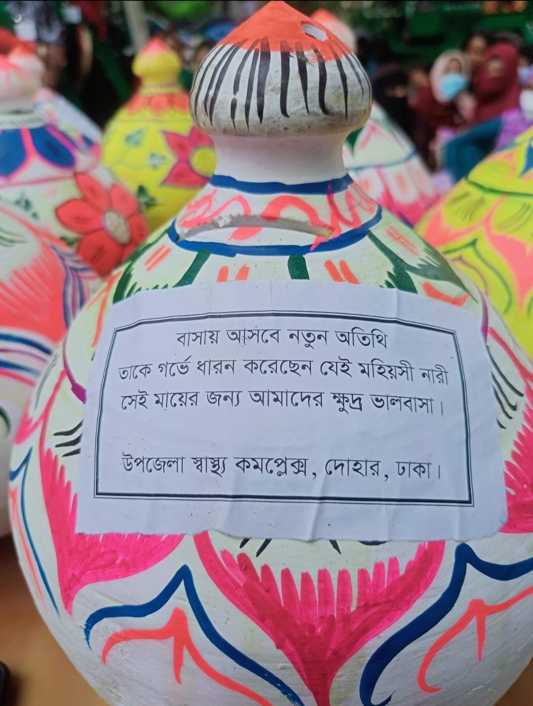 অনুষ্ঠানে গর্ভবতী মায়েদের নিজস্ব সঞ্চয়ে উৎসাহী করার জন্য তাদের হাতে তুলে দেয়া হয়- মাটির ব্যাঙ্ক।